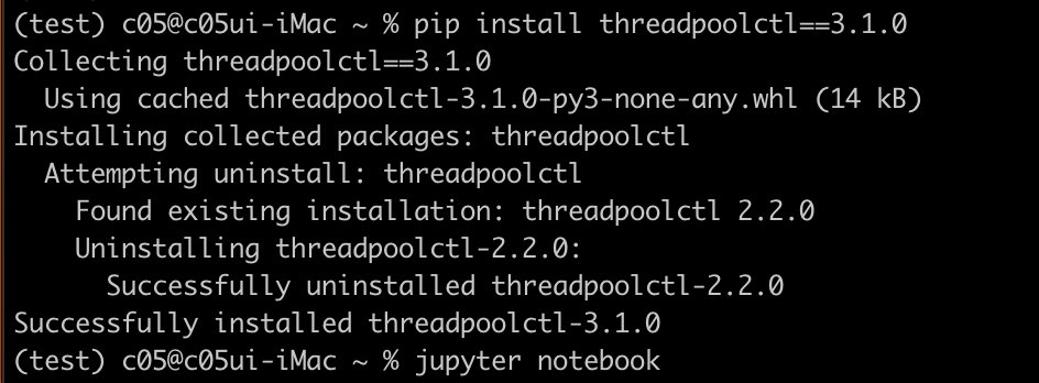 # 원인인 threadpoolctl를 3.x 이상 버전으로 업그레이드해주자.