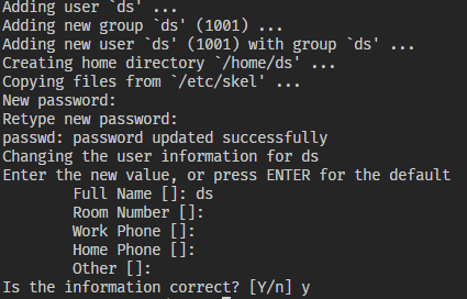 계정의 기본정보와 비번을 입력받아 계정을 생성하는 명령어이다.